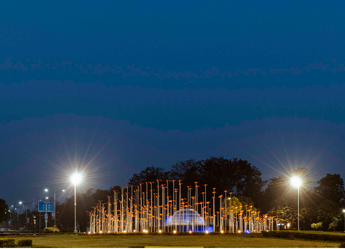 Often confused with lighting design, Architectural Lighting is actually deeply interconnected with the design elements of the building. Its role is to foster and establish the building’s aesthetic and purpose equally. For Murmurations, our Matka Chowk installation, for instance, lighting has been used to create a sense of awe as the focus is on the birds in flight. When encountered from afar at night, one can see these poetic birds that bring a certain peace to mind.