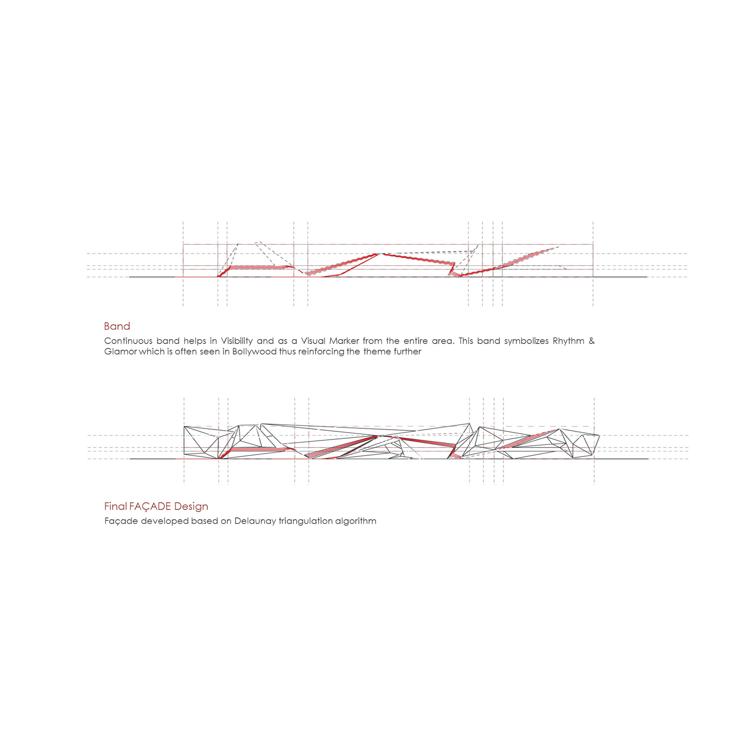 The primary concept was to use porosity of the structure to define spaces and maximize solar energy gain. Use of algorithmic design for façade development right from the conceptual stage helped streamline the basic themes in the design and planning of the station.